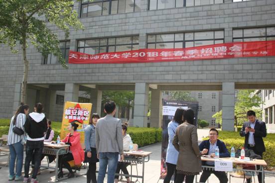 2018年4月17日下午14:00,天津师范大学2018年春季就业招聘会——地理与环境科学学院专场在劝学楼与立教楼之间的广场举行。此次招聘会由学生处、学生就业指导中心和地理与环境科学学院共同举办。
