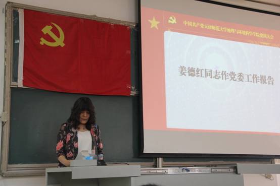 大会审议并通过了《中共天津师范大学地理与环境科学学院委员会关于党费收缴、使用和管理情况的报告》、换届选举办法和监票人、计票人名单,以无记名投票的方式选举姜德红、夏炎、李勇、董昊悦、唐诗华、王义东、胡蓓蓓七名同志为新一届党委委员。大会在庄严的《国际歌》中顺利闭幕。